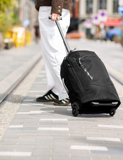 This lightweight trolley easily converts into a backpack with a stashable harness.