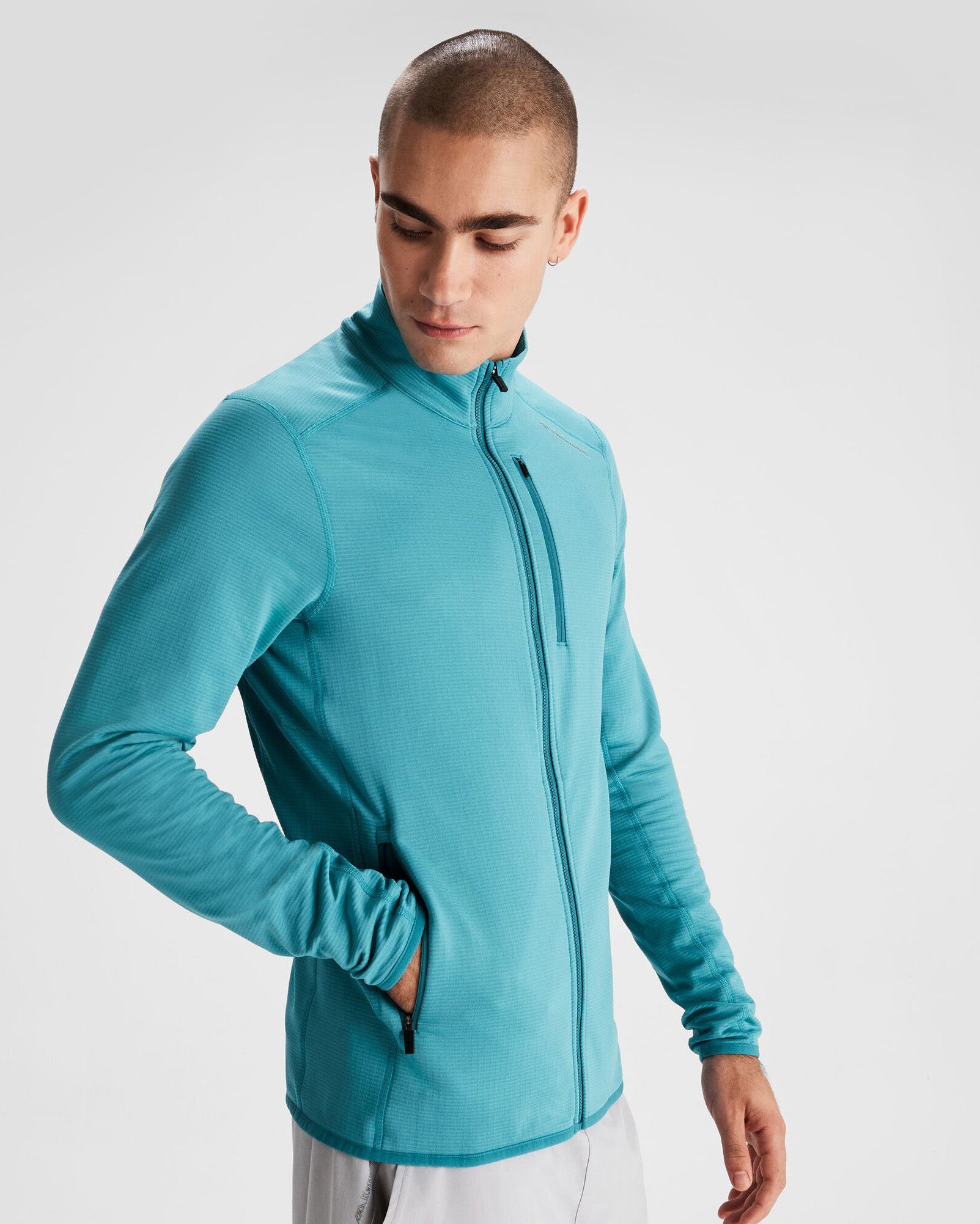 Performance grid-back fleece jacket made using carbon capture technology.